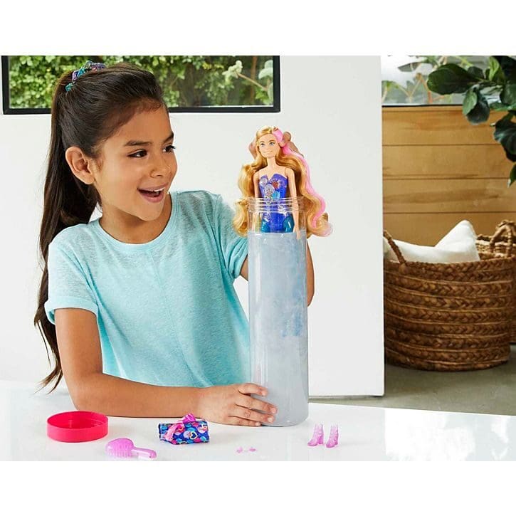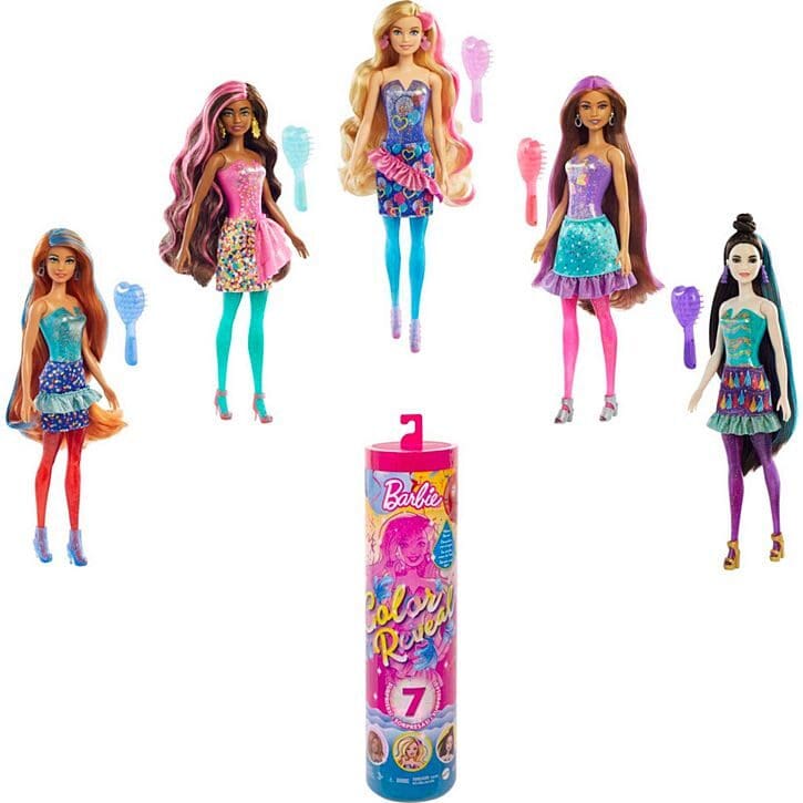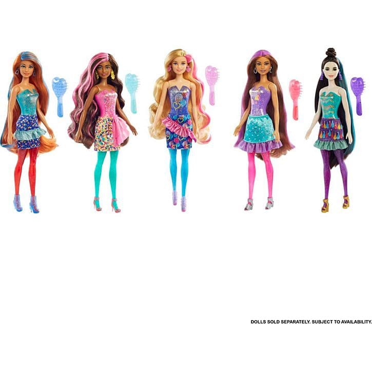 As bonecas Barbie® Color Reveal ™ proporcionam uma experiência de desembalagem cheia de surpresas – sete delas! Uma boneca com um visual festivo brilhante e em tons de joias é garantida, mas o look de cada boneca permanece um mistério até ser revelado! A embalagem faz parte da diversão – puxe a tira para remover a camada externa e revelar um tubo transparente. No interior está uma boneca misteriosa prateada metálica e colorida com estampa de confete Color Reveal ™ e quatro bolsas que escondem surpresas dentro. Remova todos e encha o tubo com água morna, em seguida, insira a boneca e gire-a. A água muda para uma cor prateada metálica e, quando a boneca é puxada para fora, suas feições são reveladas! Cada boneca tem uma combinação diferente de cor de olhos, penteado, tom de pele, corpete brilhante e pernas moldadas com glitter, mas as surpresas continuam … abra as bolsas para descobrir uma saia com babados, um par de sapatos, brincos de glitter e uma escova em forma de coração. esponja! Efeitos de mudança de cor no cabelo, sombra e lábios das bonecas aumentam a surpresa e a diversão. Cada série tem um tema único – essas bonecas Color Reveal ™ estão prontas para celebrar em grande estilo com um visual de festa. Use o tubo para armazenar esses e outros favoritos. Qual boneca você vai revelar? As crianças podem colecioná-los para misturar e combinar acessórios e expandir as possibilidades! Cada um é vendido separadamente, sujeito à disponibilidade. As bonecas não podem ficar sozinhas. Cores e decorações podem variar.