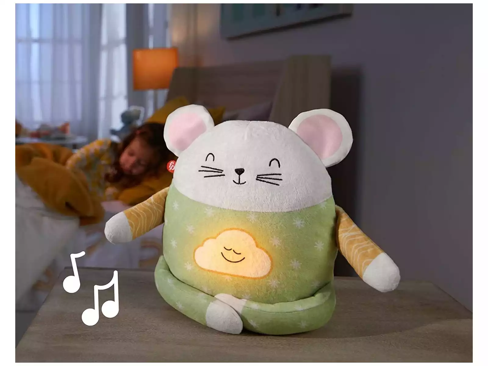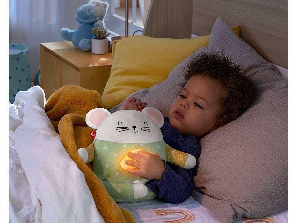 Um Peluxe que ajuda os nossos pequeninos a relaxar na hora do soninho, com 20 minutos de musica ou sons relaxantes. Ao toque o ratinho e muito também muito fofinho que faz dele um companheiro de soninho ótimo.