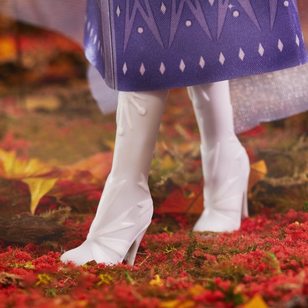 A Princesa  Elsa é uma das protagonistas das aventuras mágicas de Frozen, é muito especial pelo seu design, longos cabelos loiros trançados e o visual mágico com o qual Elsa viveu tantas aventuras. O seu vestido brilhante e botas com brilhos tornam a princesa ainda mais real.