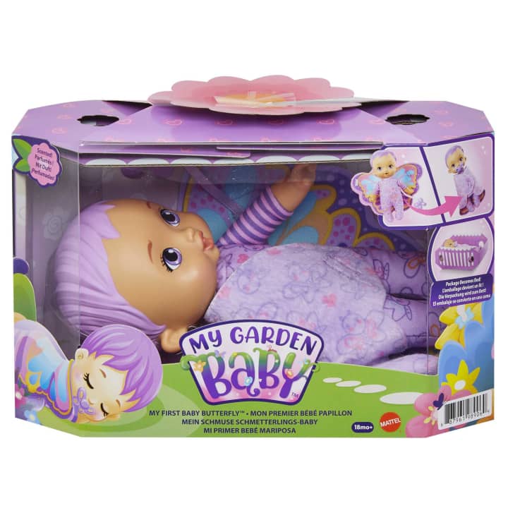 As crianças vão se apaixonar pelas adoráveis asas desta boneca Minha Primeira Bebê Borboleta™ My Garden Baby™! Com cabelos fantásticos e o delicioso cheirinho de jasmim. Envolva as asas de peluche ao redor da boneca para um abraço apertado! Com um corpo macio e 23 cm de altura, esta boneca bebê borboleta é perfeita para os pequenos braços segurarem e se aconchegarem. “Acalme” a boneca com a chupeta! Além disso, a embalagem pode ser dobrada e vira um berço para ainda mais brincadeiras de cuidar. Coloque a My Garden Baby™ na cama para que ela tenha lindos sonhos com jardins! As crianças vão adorar cuidar da My Garden Baby™!