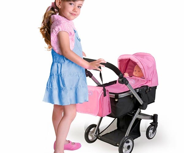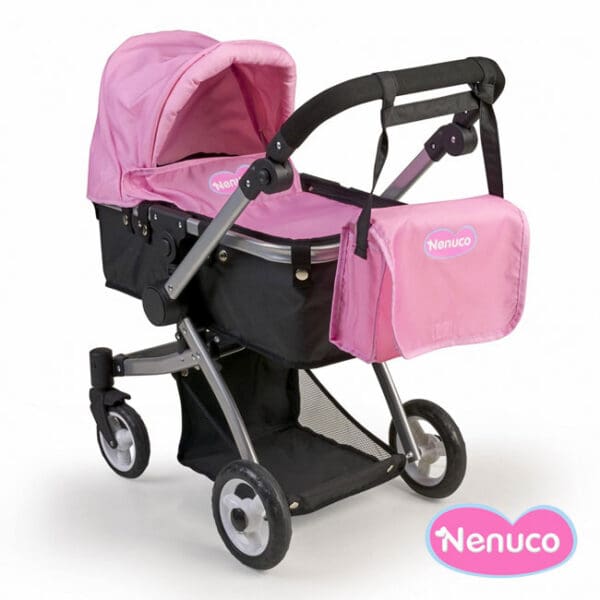 Carrinho multifunções 3 em 1, para passeares com o teu boneco bebé de frente ou de costas para ti. Carro para bébés muito completo e confortável, excelente qualidade e segurança para que o seu bébé durma e descanse. Também se transforma em cadeirinha para poderes transportar o teu boneco bebé sentado com um cinto, como nos carrinhos de verdade.. Inclui uma mala para guardar todos os acessórios do bebé, capota removível e dispõe de uma bandeja inferior onde se podem colocar mais objetos para o passeio. A estrutura é de alta qualidade e resistência e a pega manual é de altura regulável. O desenho é moderno com tecido cor de rosa.É o carrinho de Nenuco mais completo!Divertete muito nas tuas brincadeiras ao faz de conta sou mãmã.
