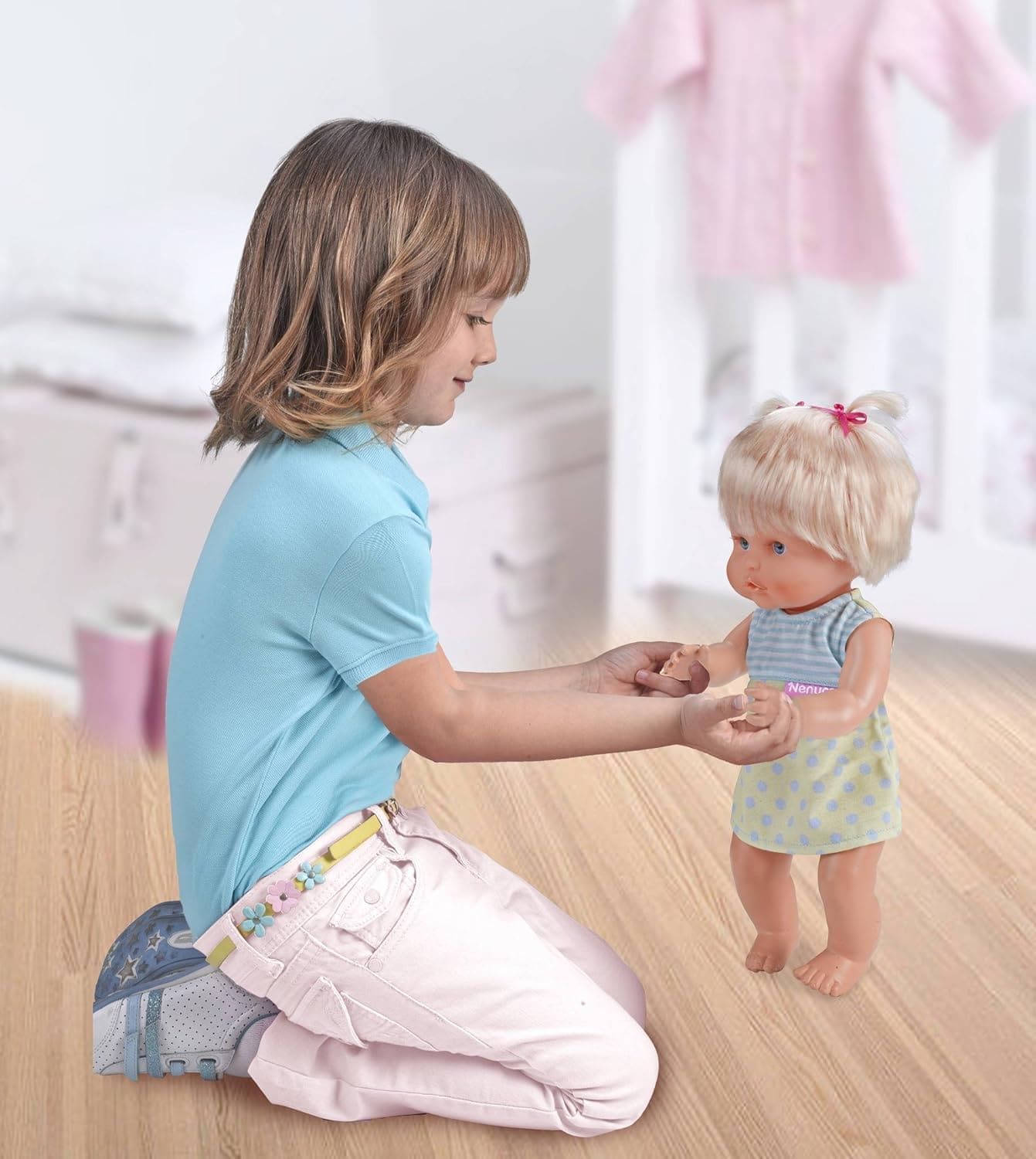 Os primeiros passos dos bebês são muito importantes e, por isso, você precisa orientá-los nessa fase tão importante. Ajude o bebê a dar os primeiros passos. Segure suas mãos e divirta-se com o Nenuco, que anda como um bebê de verdade. Ele ri a cada passo e, quanto mais rápido, mais ri. Se ele cair, ele chora, mas você só precisa levantá-lo e ele rirá novamente, e assim continuará aprendendo passo a passo.