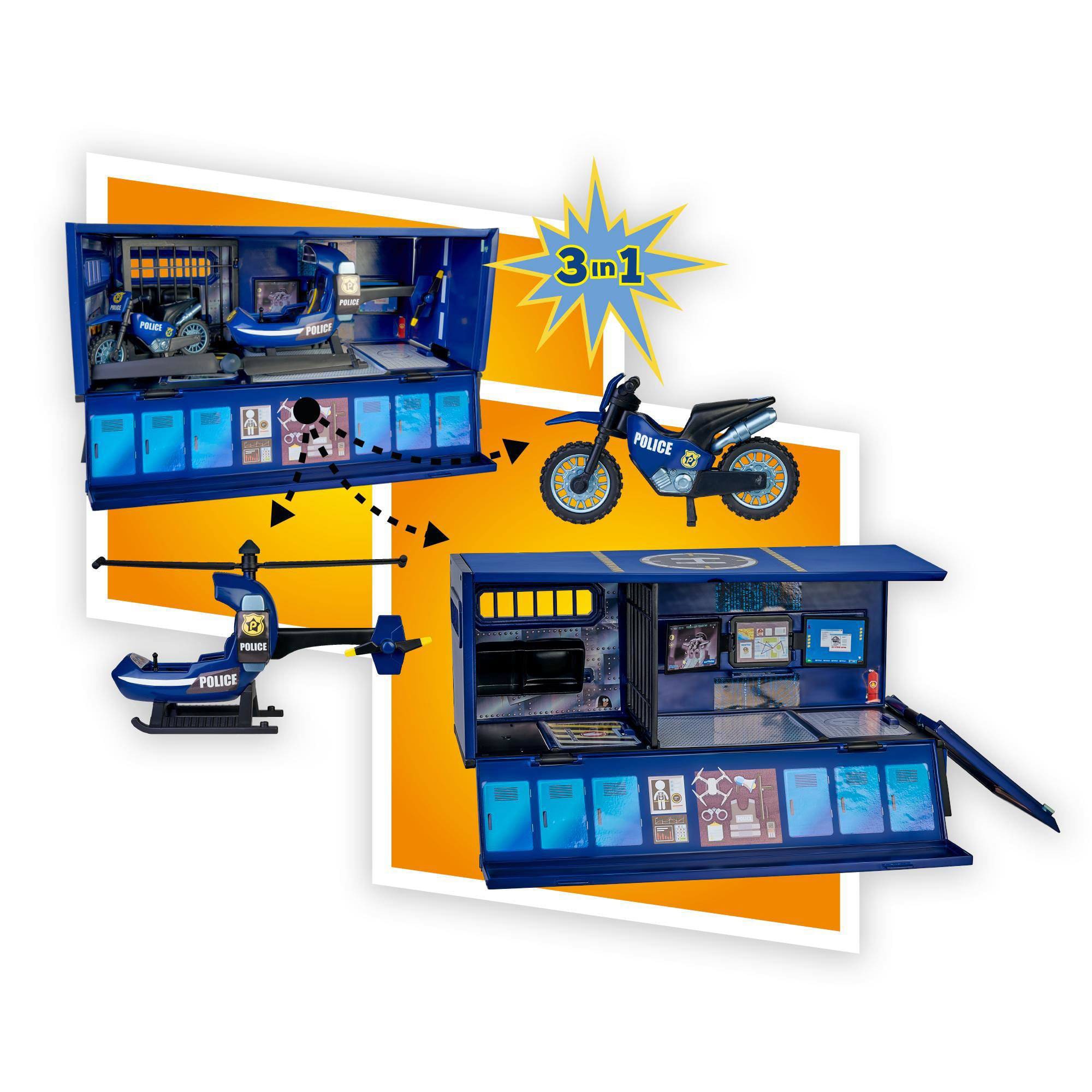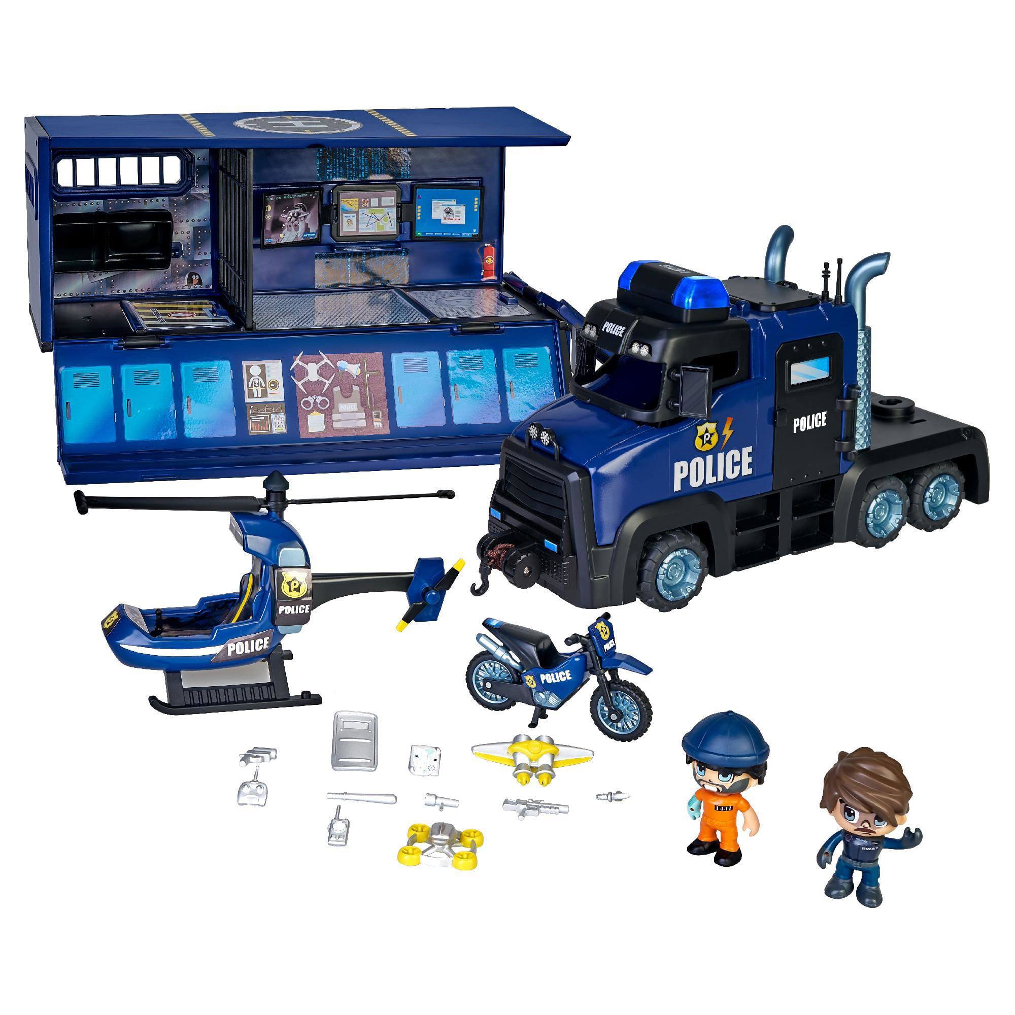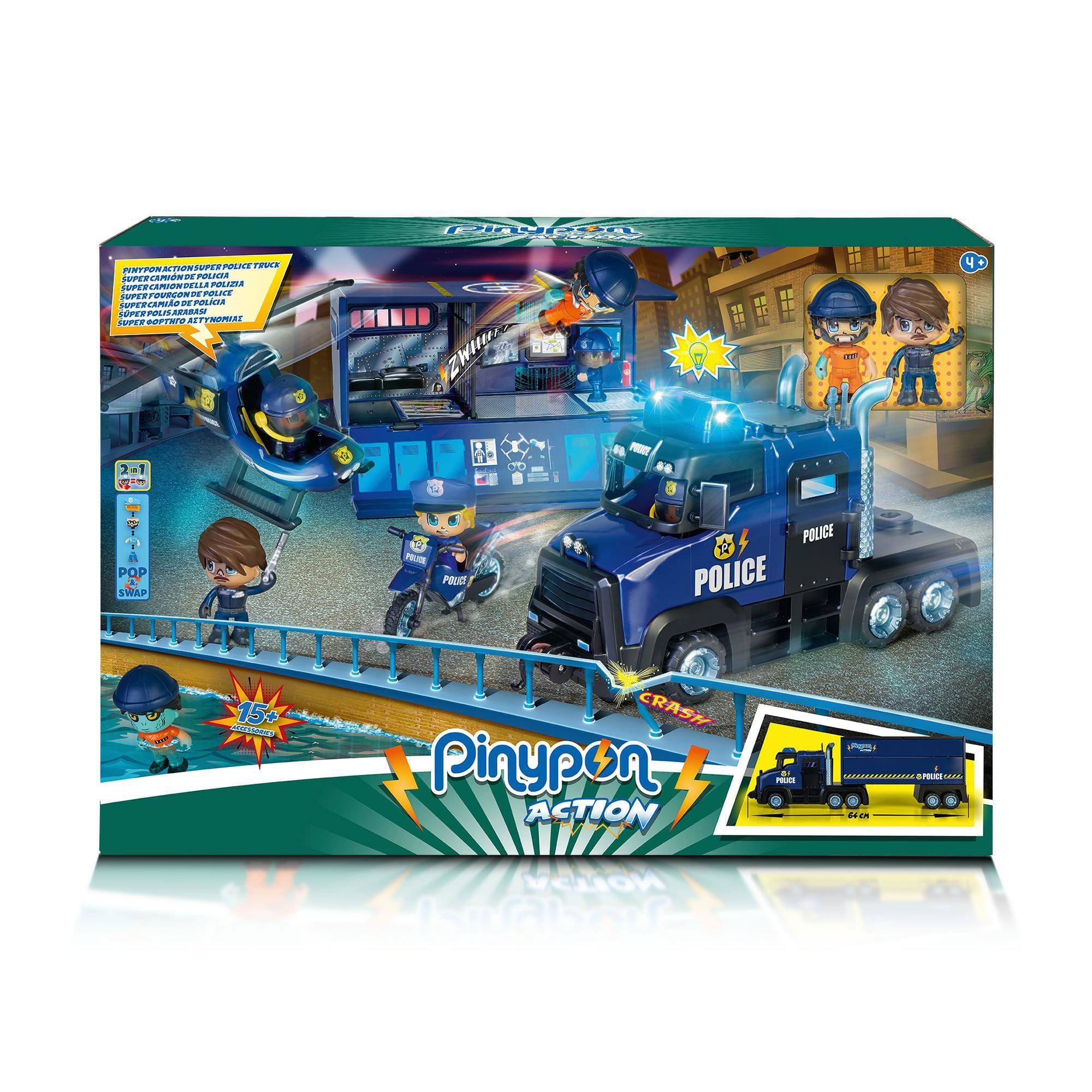 Para vigiares a cidade, a Pinypon tem um Super Camião da Policia. Este preparado para apanhar qualquer tipo de criminoso, quer seja pelo ar, ou por terra. Um conjunto 3 em 1, com uma cabine de comunicação dentro do camião, uma mota, um Helicóptero, e acessórios de grande utilização para os policias. Começa já a vigiar e a libertar as ruas de criminosos.