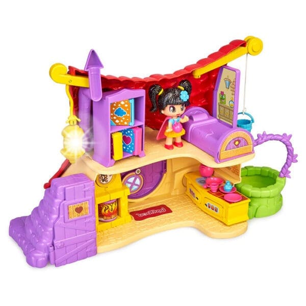 Chegou a nova Casa dos Contos de Pinypon! branca de neve, Capuchinho vermelho, cinderela, são alguns dos contos que podes brincar… Tem um poço mágico e uma lareira que gira com efeito de chamas. A lanterna tem luz. No piso de baixo, há uma pequena cozinha e, no de cima, um quarto, com uma estante cheia de livros de contos de fadas e princesas.Tens um quarto secreto com uma porta debaixo da escada. Inclui a figura da Branca de Neve e muitos pequenos acessórios dos contos de fadas. És uma princesa
